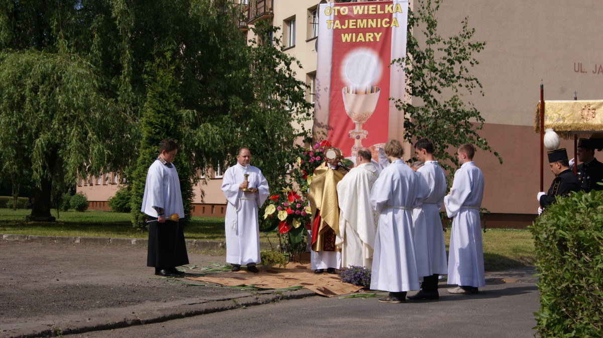 Parafianom i Gościom, Służbie Liturgicznej Ołtarza, pocztą sztandarowym, braci górniczej, dzieciom komunijnym i tym, które sypały kwiaty, orkiestrze górniczej pod dyr. Henryka Mandrysza. Szczególne słowa wdzięczności, kierujmy do tych, którzy przygotowali ołtarze i przystroili swoje domy. Dziękujemy wszystkim, którzy złożyli ofiarę na rzecz przygotowania uroczystości. Każda wspólnota przygotowująca ołtarze otrzymała 300 zł. na zakup kwiatów oraz z reszty ofiar mogliśmy zakupić nowe ołtarze.