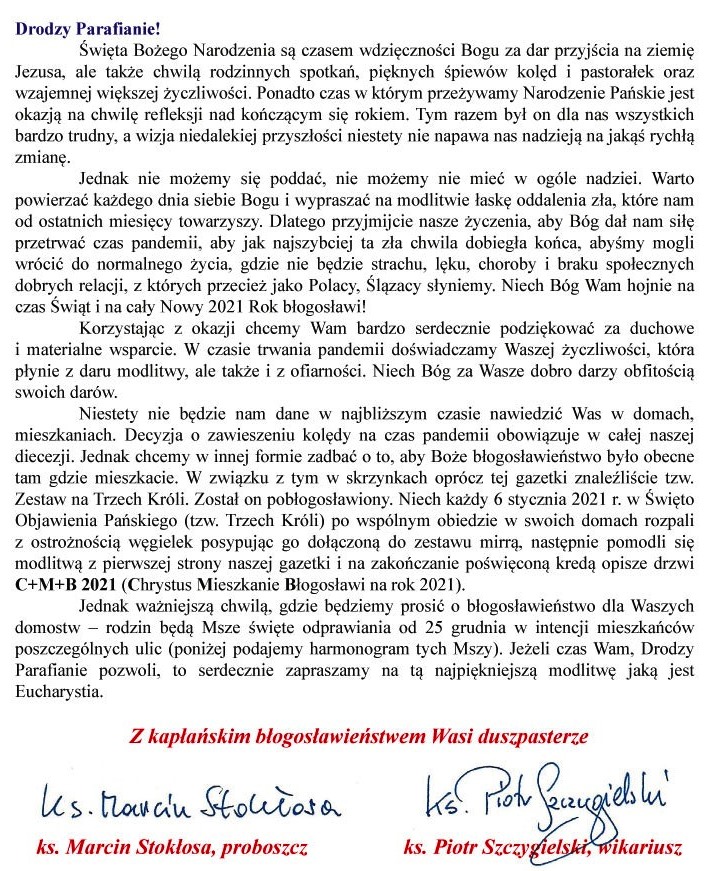 Ważna informacja dla rodziców dzieci pierwszokomunijnych! W czwartek 21 stycznia o godz. 17.00 w salkach będzie można odkupić ubranka komunijne z ubiegłych lat. Natomiast w piątek 22 stycznia według poniższego harmonogramu odbędą się spotkania dla rodziców dzieci pierwszokomunijnych wraz z pobieraniem miary na nowe stroje komunijne. Harmonogram spotkań (na spotkanie przynosimy dzienniczki):